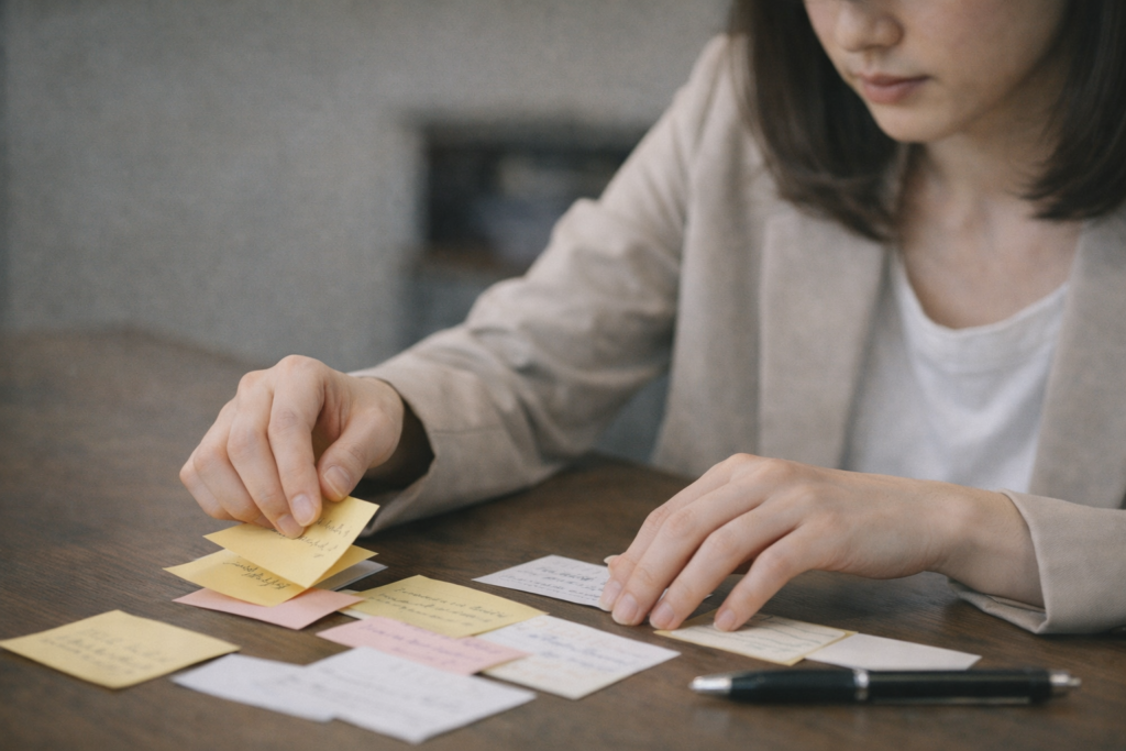 そんなときは、出来事を時系列でメモして「何が負担か」を言語化すると、優先順位がつきます。
