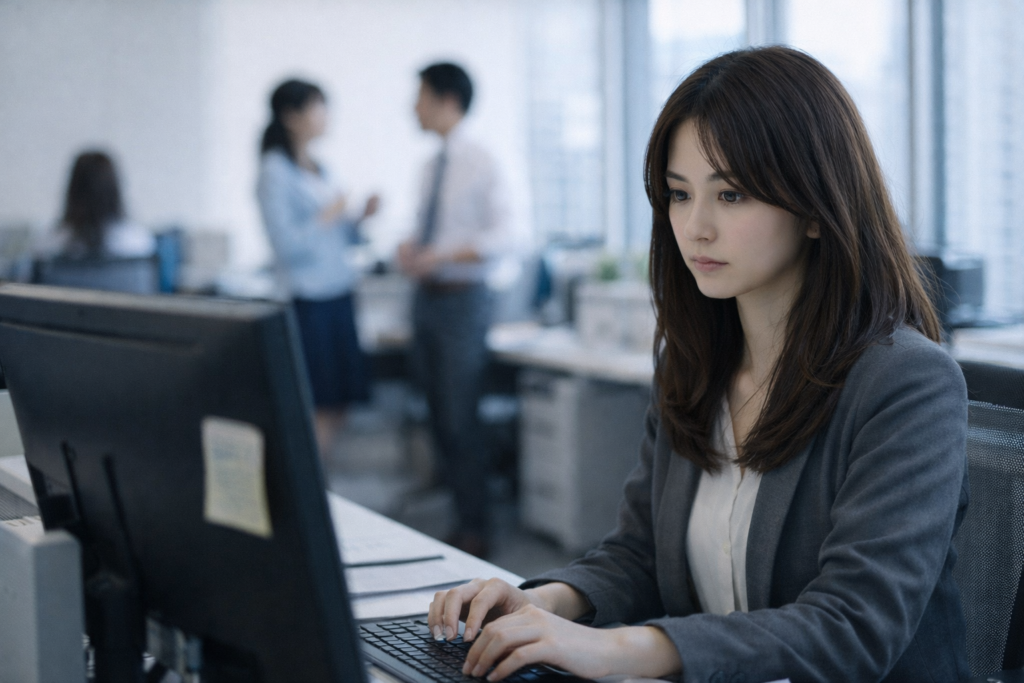 金曜17:30、退勤前のフロアで「来週の段取り」が口頭で決まりがちな職場だと、孤立している人ほど情報が抜けます。